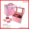 aluminum makeup case Features: Pink StudioMakeup Case w/ Removable Trays Textured Elegant Pink finish Inside Twin Storage Compartments 4 Removable Pink Trays Tri Fold Studio Mirror w/ Secure Travel Latch OUTSIDE DIMENSIONS: 12"Lx9"Wx11"H LARGE TRAY DIMENSIONS: 5.5" L X 7.5" W X 4" H OTHER TRAY DIMENSIONS: 5.5" L X 7.5" W X 1" H TWIN INTERIOR COMPARTMENT DIMENSIONS: 6" L X 8" W X 8" H